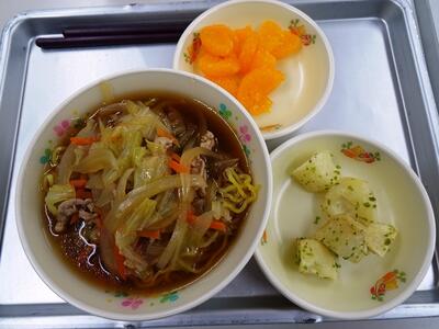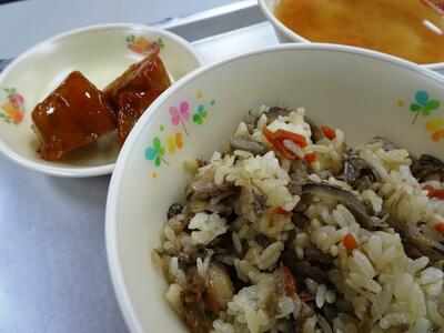 (3年生の感想)「ほたてごはんが香ばしい」「ほたてごはんの「ほたて」がおいしい」「おさつスティックは、食感も味もいい」「おさつスティックは、おいしいけどあまあまだ」「おさつスティックは、固いけどおいしい」