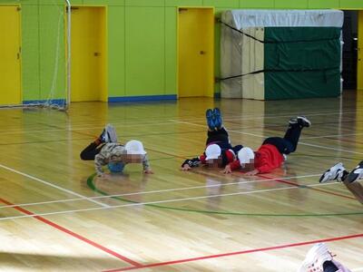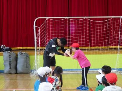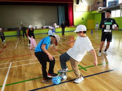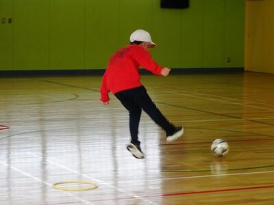 2年生が参加して、サッカーボールのけり方やドリブルの仕方を教えてもらいました。