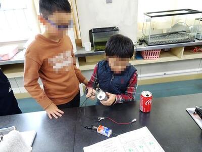 【新着】電気は通るかな?(3年生) 投稿: 校長(管理者) (12/09) 理科室に行くと、3年生が実験をしていました。 「どんな物が電気を通すのだろうか?」という課題を解決するために、乾電池と豆電球を使って調べていました。 予想に反して、豆電球が点灯したときはうれしそうでしたね。 この学習が、中学校に行くと「導体」や「絶縁体」などの学習につながるんだな~と感じたところです。 【給食コーナー】12月8日(月) きのこと鶏肉のごはん、みそ汁、牛肉入りコロッケ