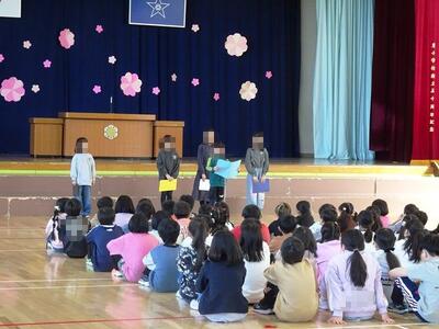 校長の話の後、1年生から5年生までの代表が、この1年間に頑張ったことや成長したことを述べていました。